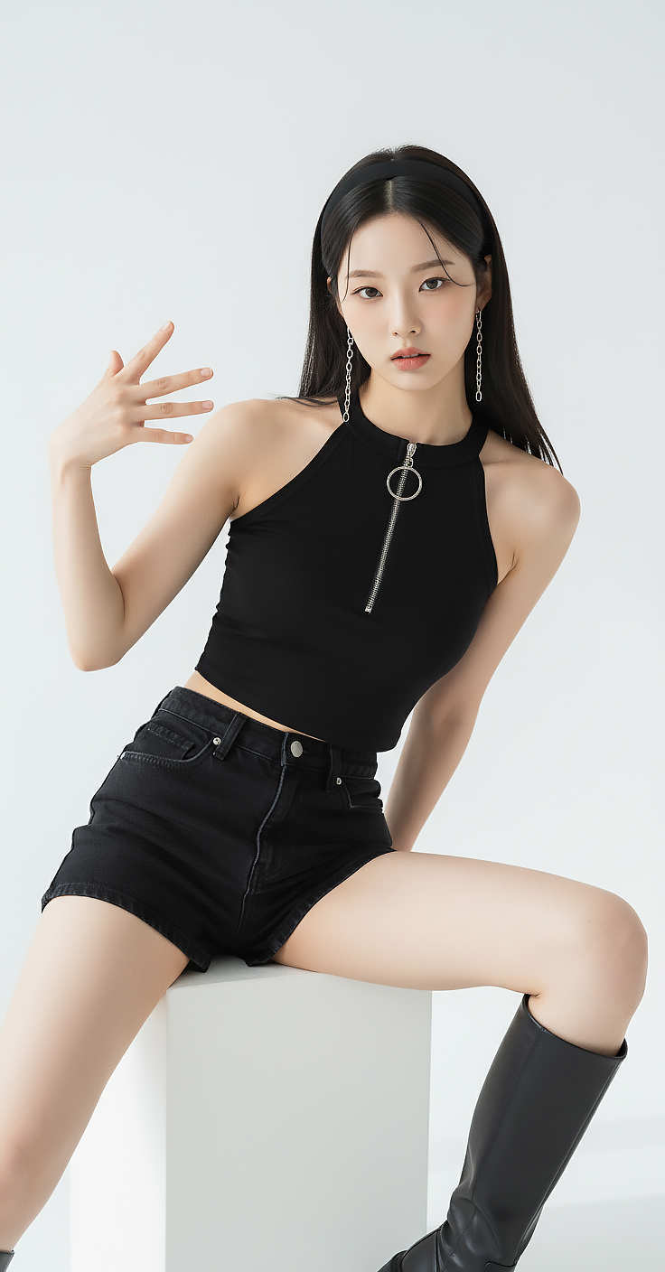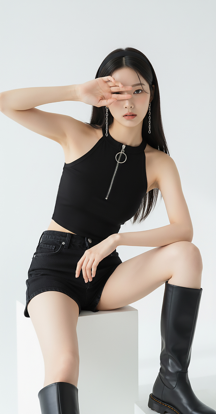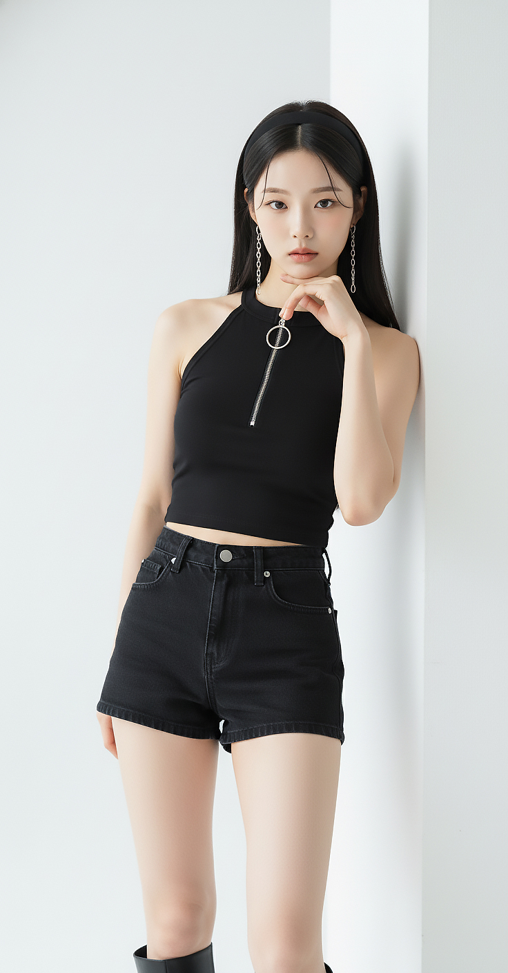 이미지 확대보기TOP(8097) 지퍼 홀터 크롭탑